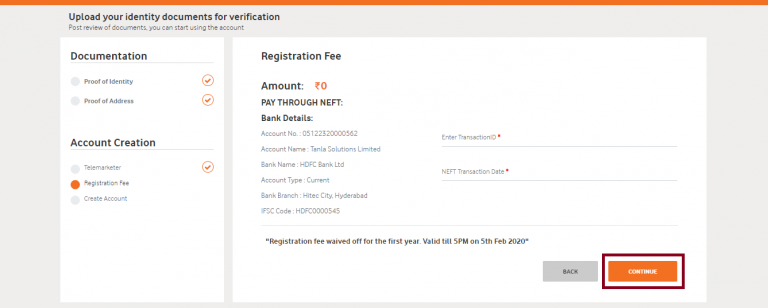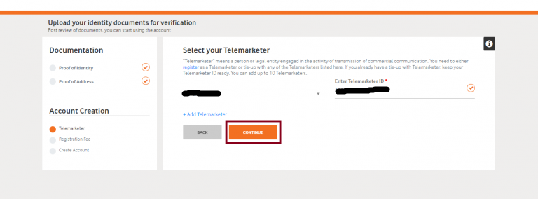 - After entering all the details, click on the Continue button to proceed with the registration.