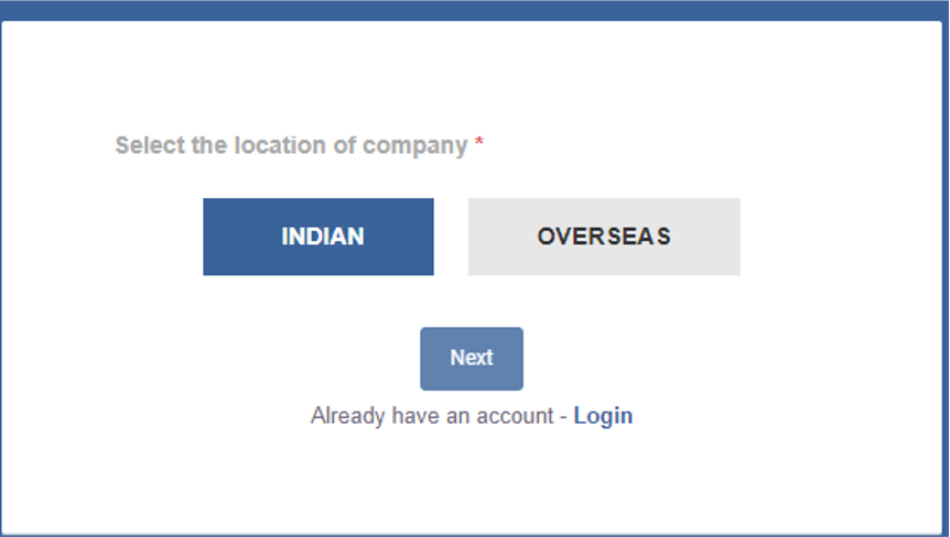 Once you select the type of option it will redirect you to another page where you have to select the Origin of Entity (Indian or Overseas)