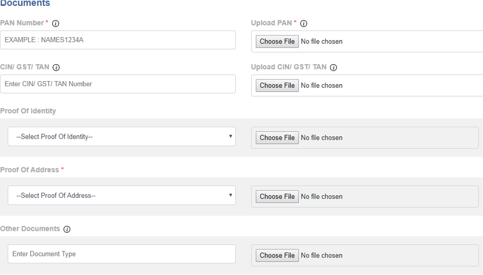 - Proof of address*: Duly Scanned copy of proof of address of the organization with material details (Name of the Entity and Address) clearly visible to the reader to be uploaded.