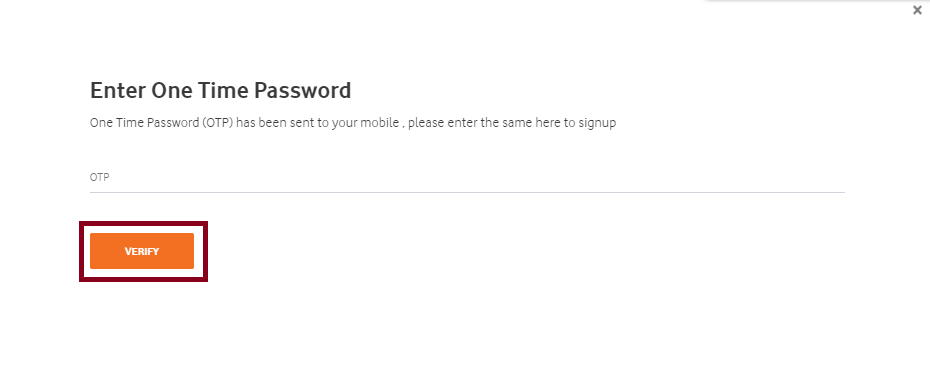 - As you click on the Login button, another window will appear where you need to enter OTP received on your registered mobile number. Enter the OTP and click on Verify.