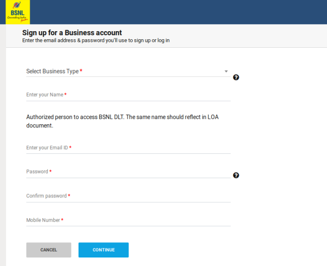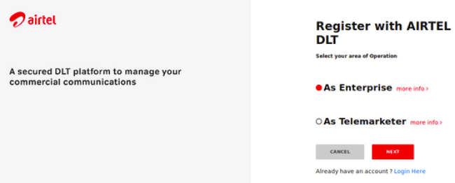 In order to register with Tata Telecommunications for DLT, please follow the below steps.